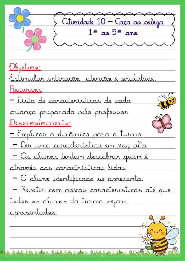 Esse tipo de proposta costuma quebrar o gelo inicial e facilitar a construção de vínculos entre os colegas, algo essencial nos primeiros dias.